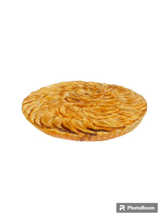 Masa clásica 1, 2, 3 con relleno de crema pastelera y manzana cocida en canela y decorada con manzana al horno con azúcar y canela.