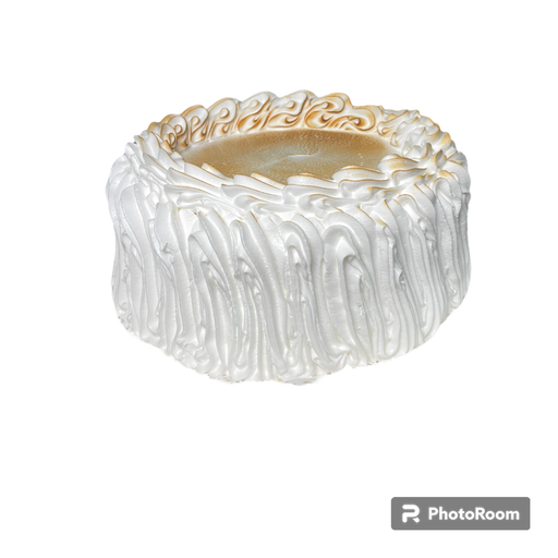 Bizcocho remojado con mezcla de tres leches (condensada, evaporada y crema de leche), relleno con manjar y cubierta de merengue.